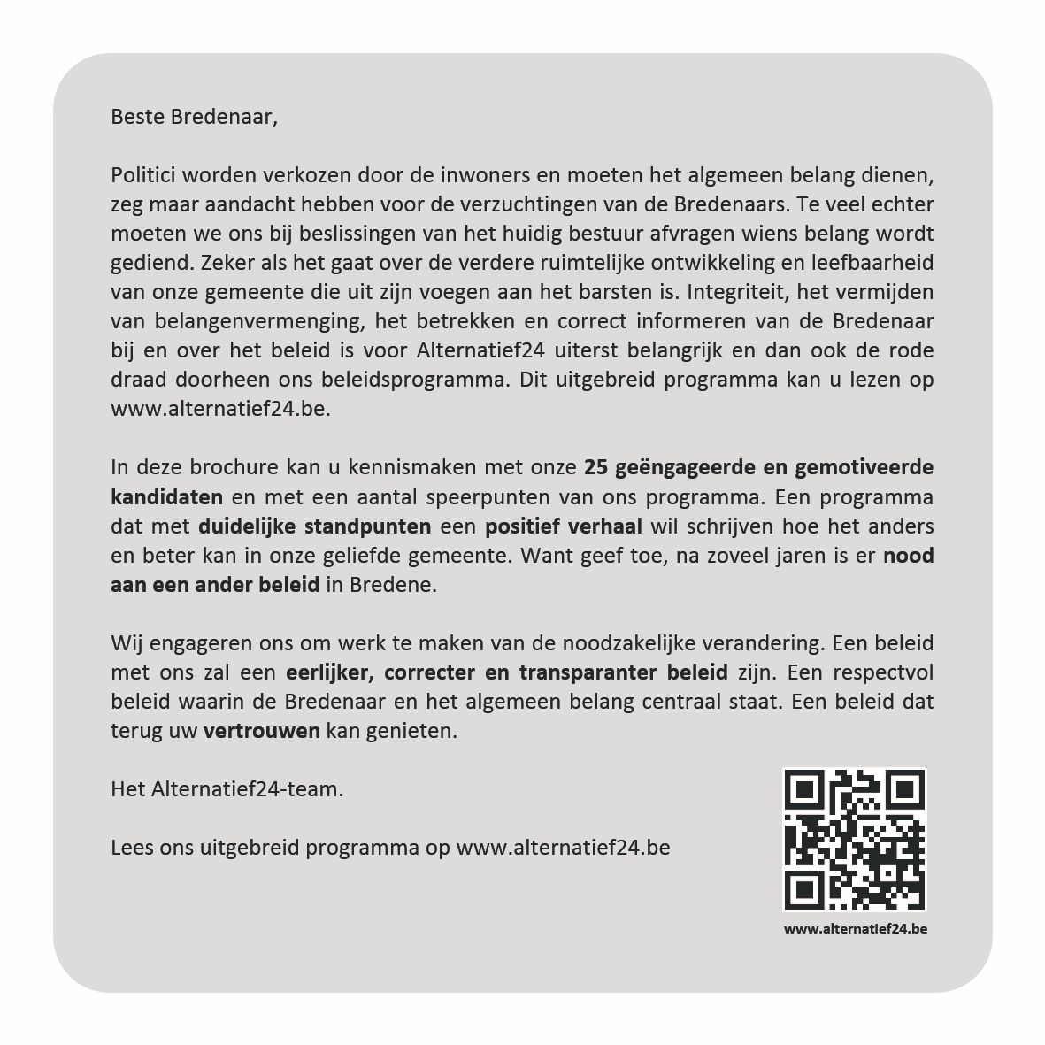 In het laatste weekeinde van september valt de verkiezingsbrochure van ALTERNATIEF24 in de brievenbus.