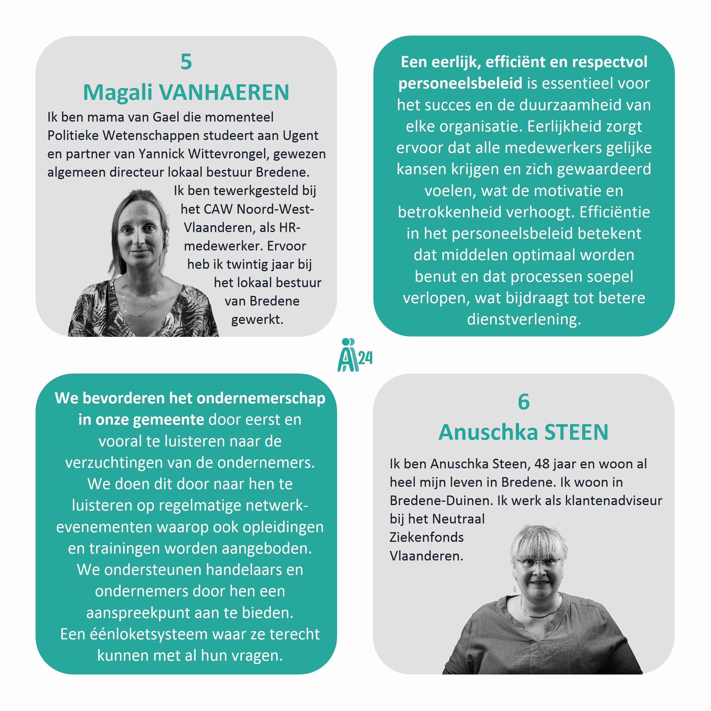 Onze lijst bewijst dat we veel meer zijn dan een samenstelling van losse flodders, zoals wel eens beweerd wordt. Onze lijst is een brede lijst met stuk voor stuk zeer kwalitatieve en gemotiveerde mensen. En wij maken ook radicale keuzes. Omdat wij veel sterke vrouwelijke kandidaten hebben voor ons politiek project, vertalen we dat ook op de lijst. Bij de eerste tien plaatsen staan zeven vrouwen. Met Vicky Dereere als lijsttrekker.