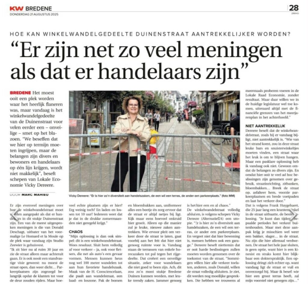 De toekomst van de Duinenstraat in Bredene blijft een heikel punt. Schepen Vicky Dereere: deze legislatuur wordt er eindelijk een visie uitgewerkt,…