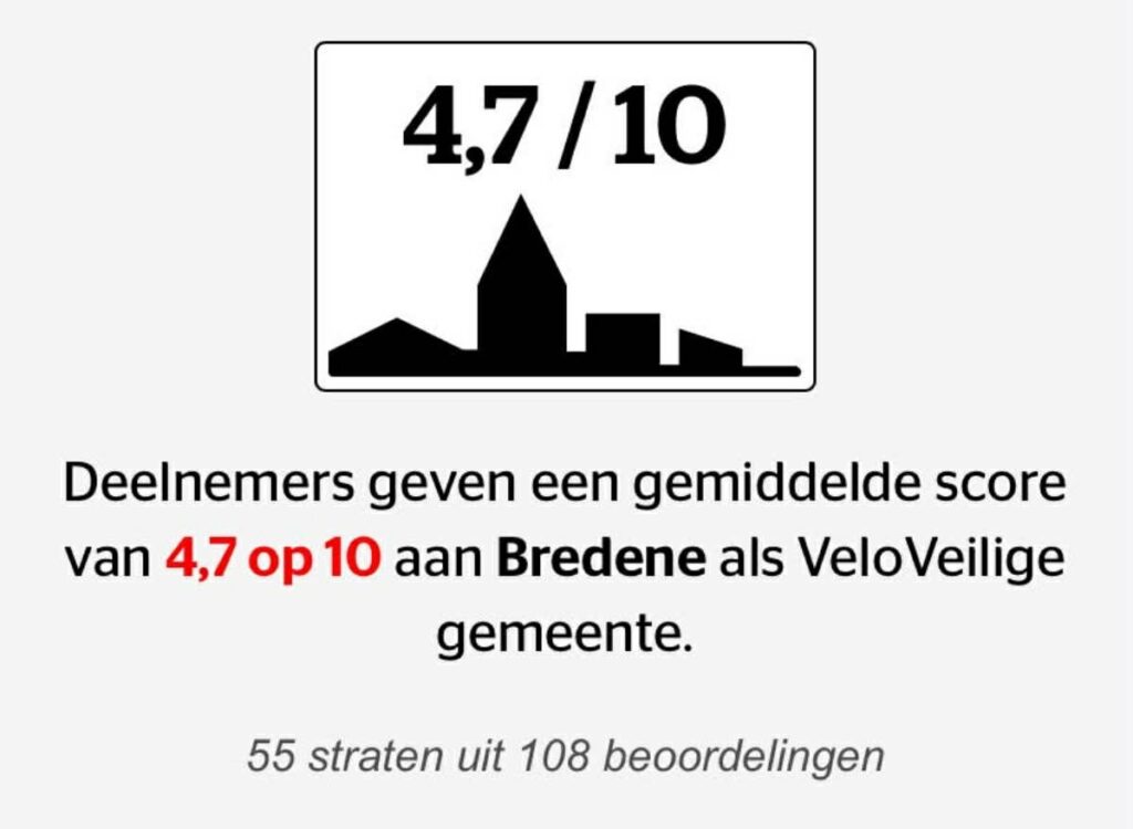 “De Bredense score van 4,7 op 10 in het onderzoek VeloVeilig op HLN.BE toont aan dat er nog veel werk aan de winkel is, maar ze ligt niet ver onder…
