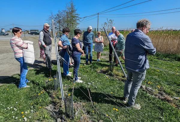 Een tiental Alternatievelingen kregen er onder een zonnige hemel een rondleiding door de duidelijk door wijn, kunst en natuur gepassioneerde Pieter Vitse die samen met zijn echtgenote Nathalie Boydens het wijndomein uitbaat.